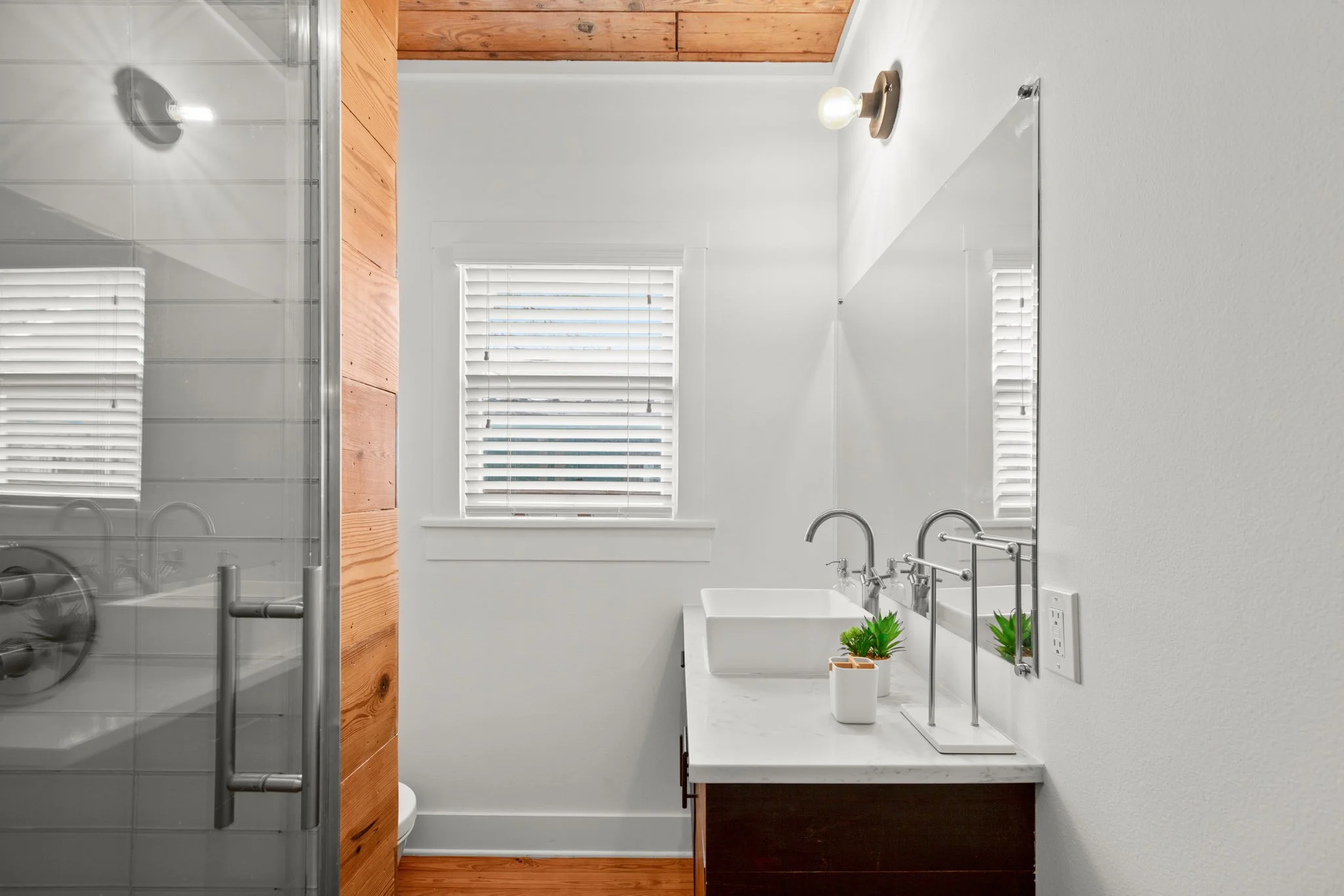 Every corner of the bungalow exudes a sense of nostalgia and craftsmanship. A refurbished clawfoot tub stands as a timeless centerpiece, inviting relaxation and reflection. Outside, the tear drop siding was painstakingly restored to its former glory, while the original double-hung windows were lovingly preserved, allowing natural light to cascade into the interiors.
