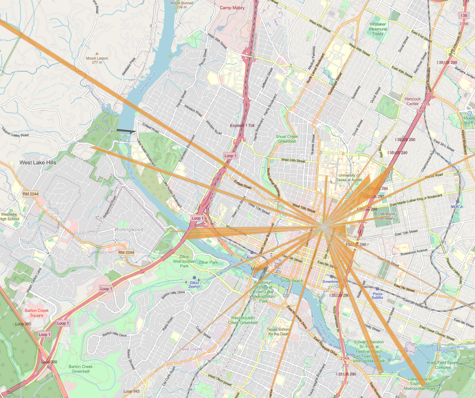 The Capital View Corridors are a series of lines that run throughout the city of Austin, demarcating specific sightlines from which the State Capitol Building and other notable structures in the city can be viewed. These corridors are protected by city zoning regulations that limit the height and mass of new buildings within the specified areas.